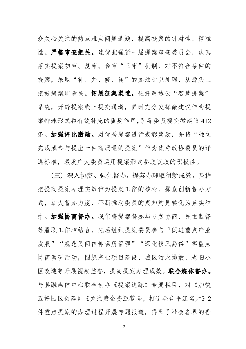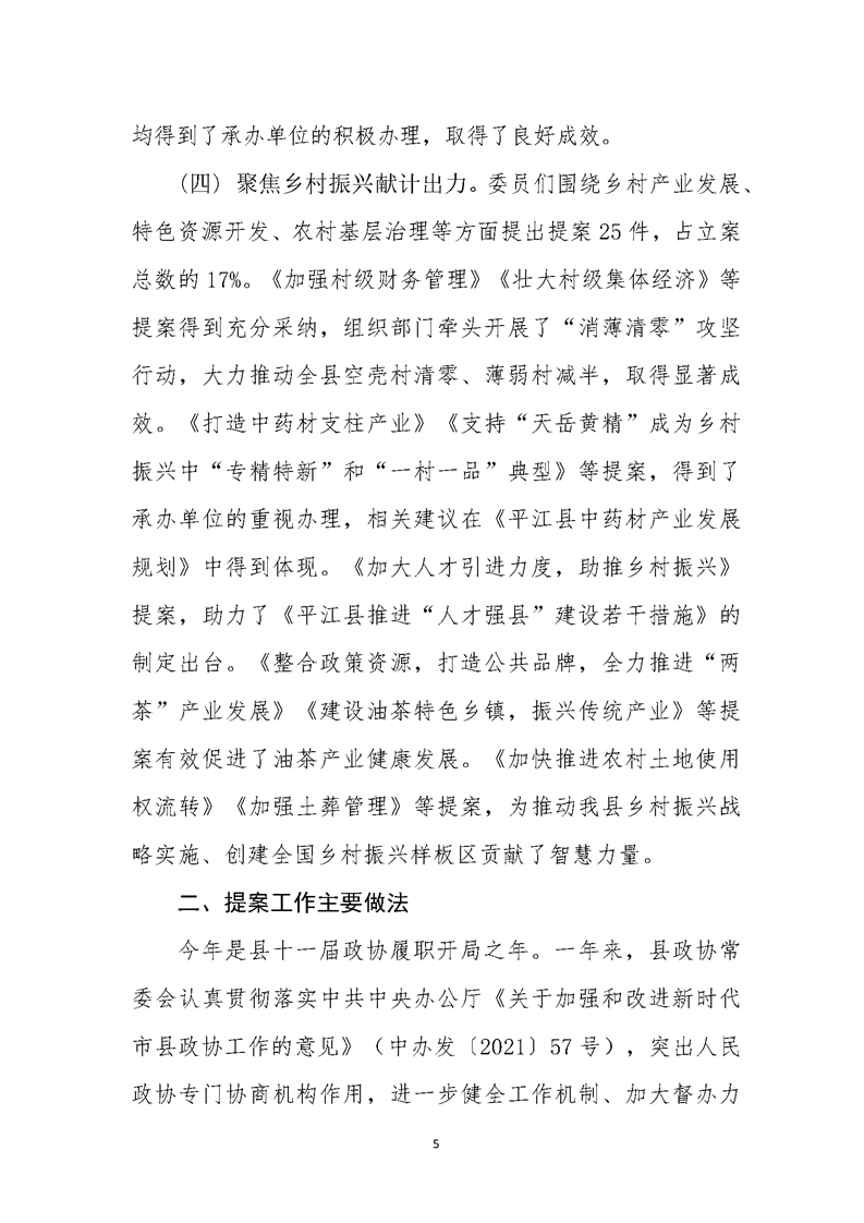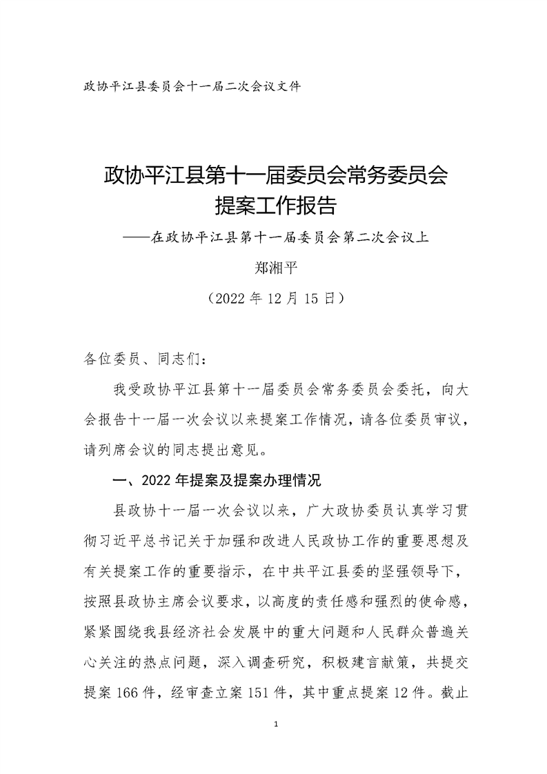 政协平江县第十一届委员会常务委员会提案工作报告(第二次会议)
