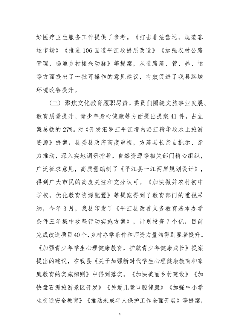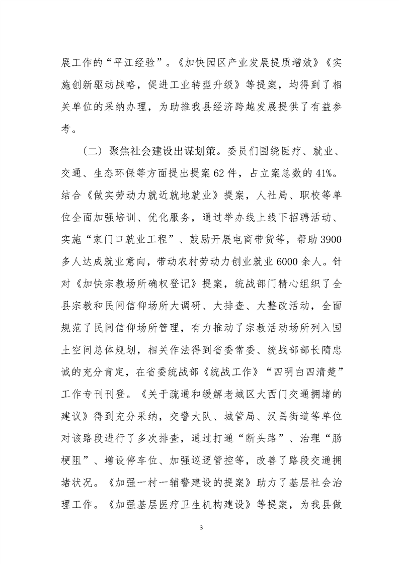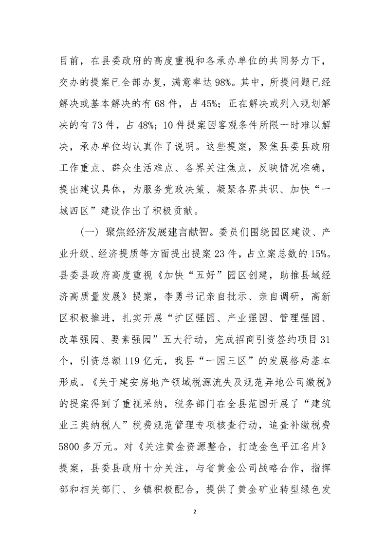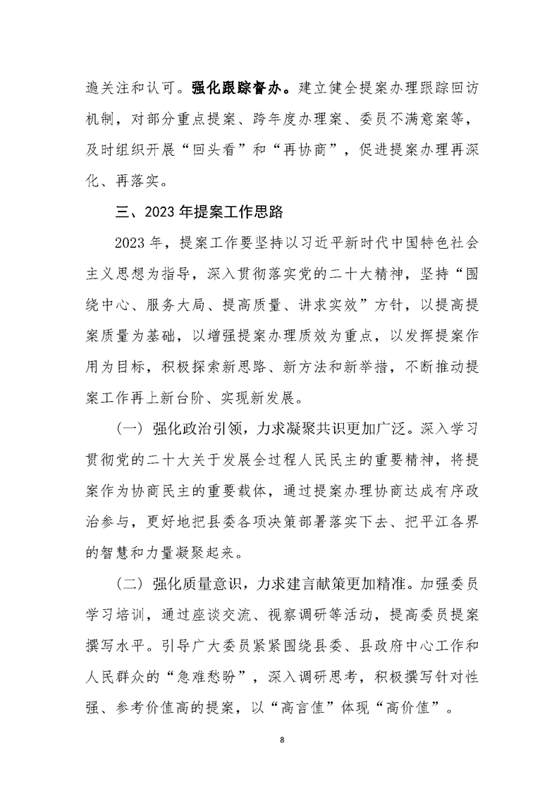 政协平江县第十一届委员会常务委员会提案工作报告(第二次会议)