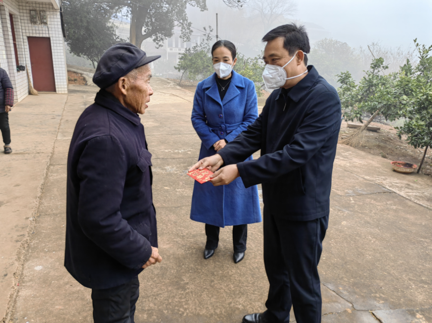 1月13日上午李春华副主席在草尾镇乐园村慰问老党员。